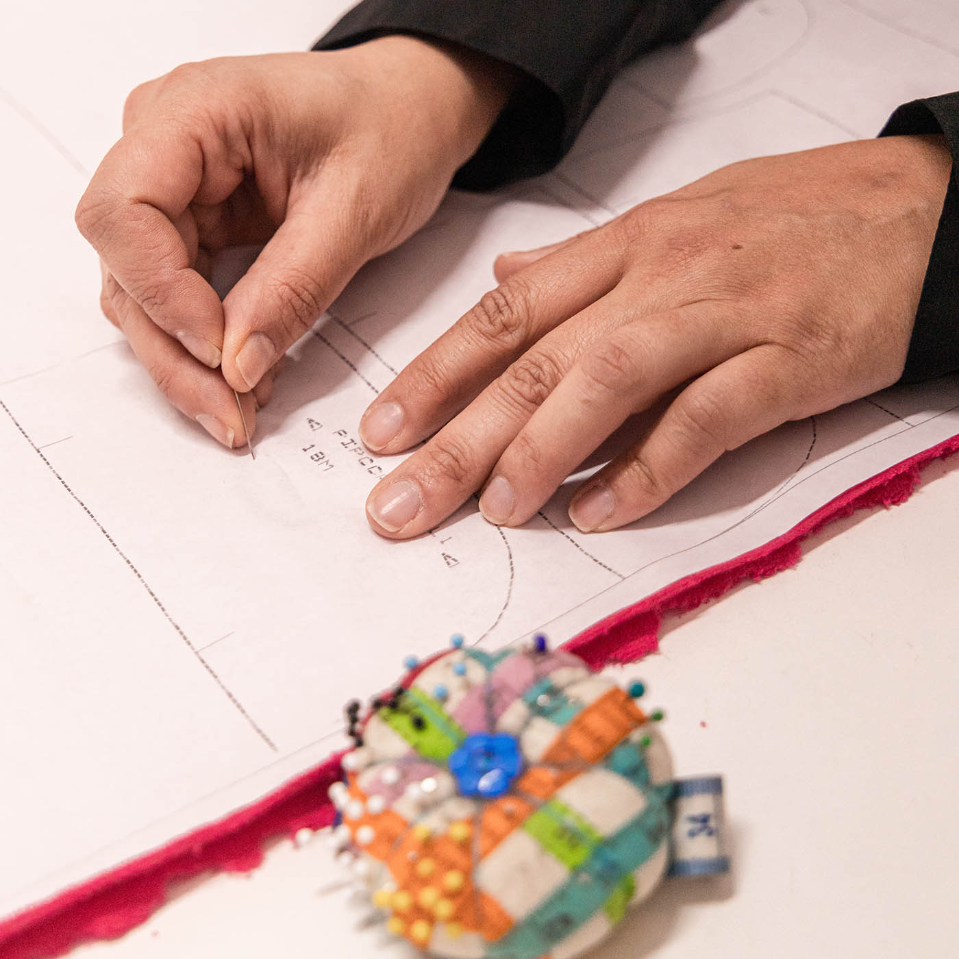 Para recolocar o ser humano no centro do projeto, decidimos escolher apenas um ateliê de costura em São Paulo com o qual poderiamos trabalhar em colaboração e com o qual poderiamos repensar cada etapa com cuidado, do início ao fim.